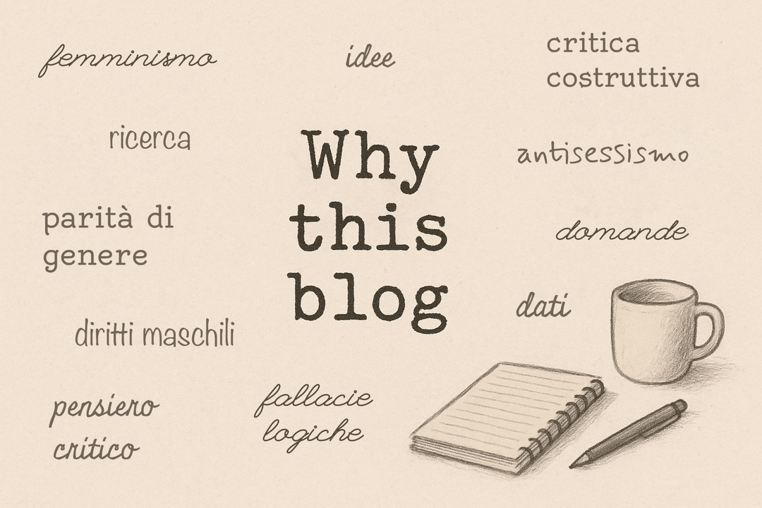 - Analisi dei fenomeni sociali — Tratterò temi come patriarcato, cultura dello stupro e gender pay gap, cercando di ricostruirne le origini e di studiarne gli effetti, basandomi su dati storici e statistici. Partirò spesso da domande o affermazioni ricorrenti, adottando un approccio vicino a una systematic review della letteratura e delle informazioni disponibili, così da formulare una risposta o un’analisi evidence-based.