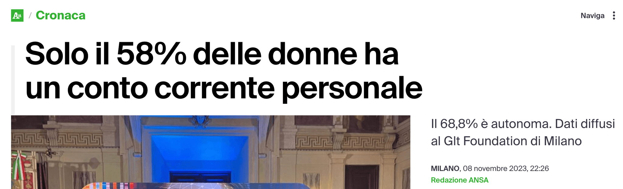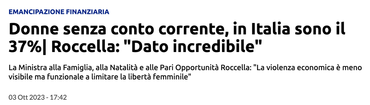 L’aspetto singolare, comunque, è che parecchie testate riportino numeri francamente allarmanti in modo acritico, quando consultando ad esempio i dati raccolti dal World Bank Group si può notare che un 58% di donne titolari di conto corrente è un numero da paesi come l’Arabia Saudita, l’Ecuador o la Turchia, e in ogni caso del tutto fuori scala rispetto alla media europea: da una breve ricerca, infatti, dovremmo essere sul 4-5%, come si può leggere ad esempio dal World Savings & Retail Bank Institute e N26.